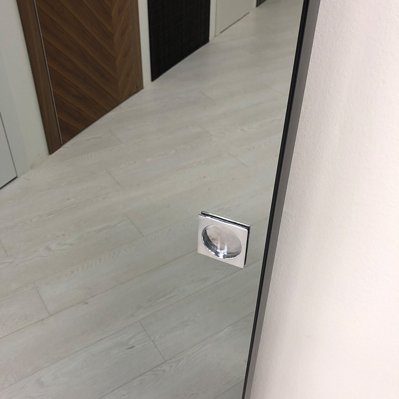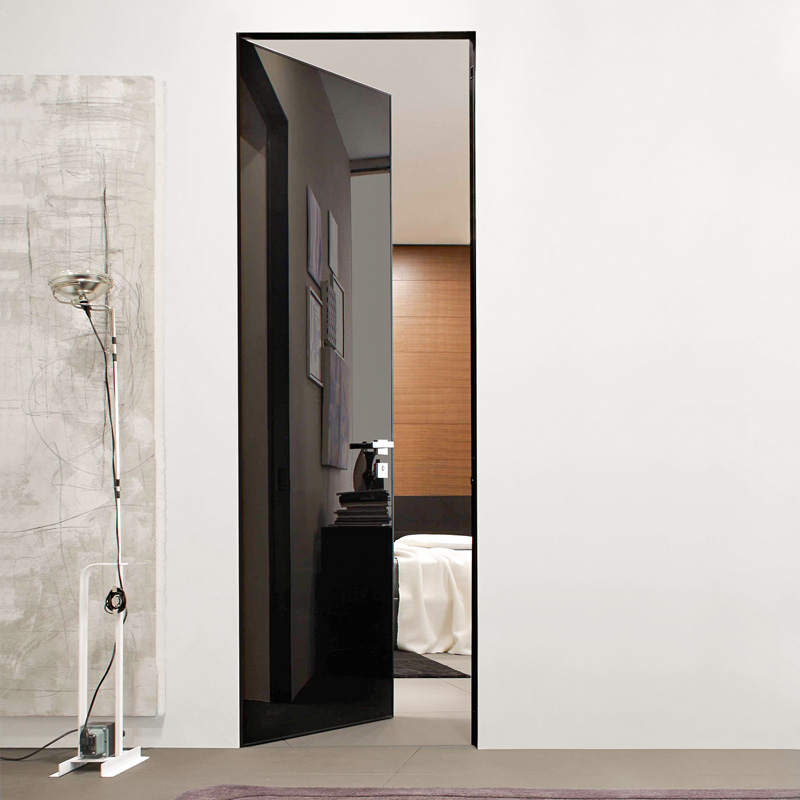 Материалы для изготовления хайтековой двери – металл после шлифования, пластик и стекло. Применяемая фурнитура – блестящая и, желательно,
